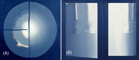 A blend is the gradual transition from one color to another. Oil paint, because it takes time to dry, allows you to move the wet paint around on the canvas. This makes it easy to do the thing most difficult to do with other types of paint, the blend. All brushes will blend oil paint. Flat brushes are best and rounds the worst. The principles are the same for large and small blends.