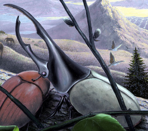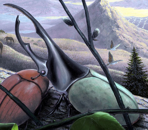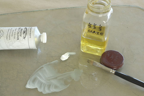 Mix the color with the glaze solution on your palette until you have the degree of translucency needed. Apply it to the horizontal painting with a sable brush.